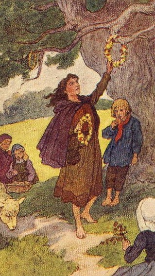 The children mourned and could not be comforted; and they made an agreement among themselves that they would always continue to hang flower-wreaths on the tree as a perpetual sign to the fairies that they were still loved and remembered, though lost to sight. But late one night a great misfortune befell.