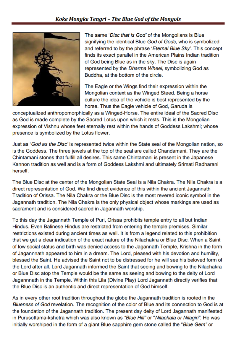 The state emblem of Mongolia was adopted on March 25, 1992,after the fall of the Communist government. It features a Blue Disk (Neela Chakra) encircled by interconnected Swastikas. Known as Tumen Nasan, the Swastikas represent Eternity or Ananta ‘the Un-ending’. This is Ananta Shesha who supports and encircles Vishnu and it is the very same Sacred Cobra encircling the Disc of the ancient Egyptians. The State emblem also includes 3 Chintamani (Wish-fulfilling) Stones and a Buddha Dharma Wheel resting upon a Lotus Flower.