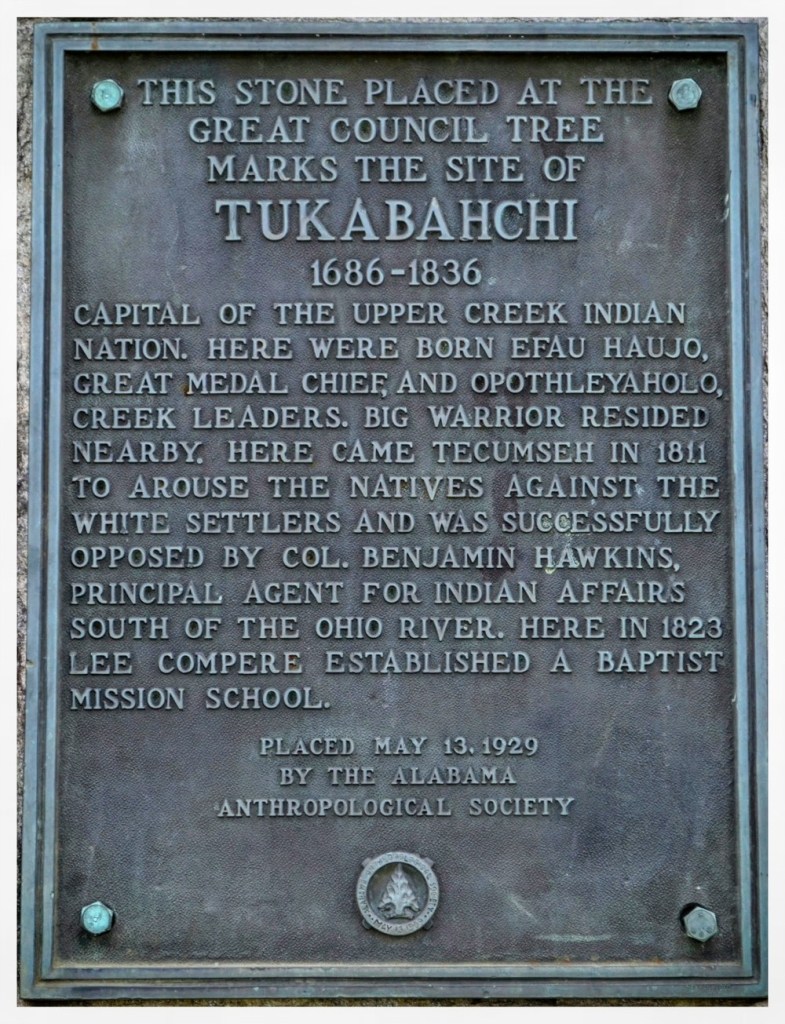 ‘WHEREAS In the fall of 1811, Tecumseh of Creek and Shawnee ancestry came here to his mother’s town to persuade the Nation’s warriors to adopt his ideas of rejection of the presence of American intruders and return to traditional ways;