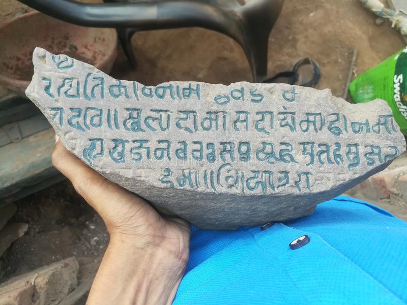 Paramara King Devpala Era Stone Inscription in Sanskrit Devanagari Script Dated Samvat 1282, (approx 820 AD) from Okhla Village Khargone, Madhya Pradesh, India