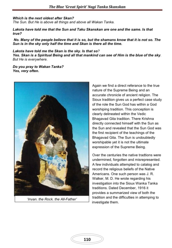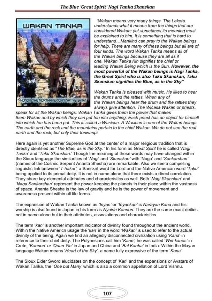 “His titles given by the people are Taku Skan-skan & Nagi Tanka, the Great Spirit. Names given by the Shamans are Skan & To, or ‘Blue’. His symbolic color is Blue.” Secret Instructions for a Shaman