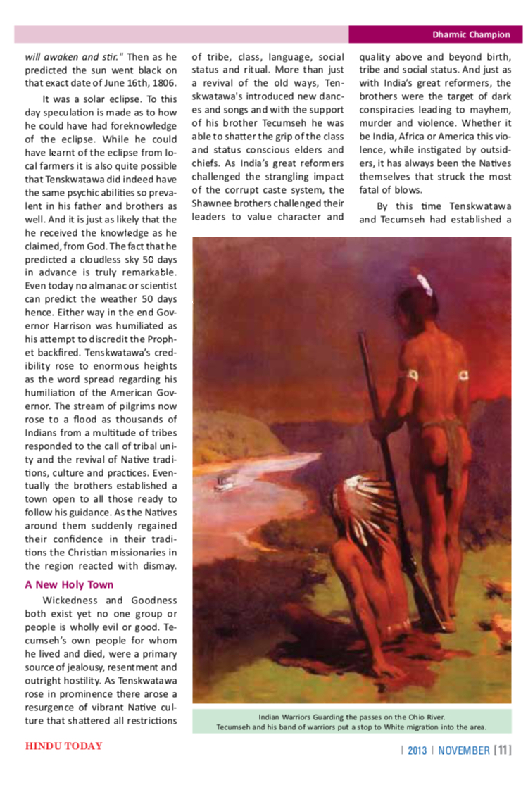 Tecumseh’s people, the Shawnee, identified meteors and comets as a ‘Celestial Panther Flying Across the Sky’. At his birth a meteor burst through the skies and thus Tecumseh was named after this phenomenon. Surely it was no mere coincidence that this great comet appeared along with he whose very name, Tecumseh, means meteor or comet and he whose birth was marked by this very same ‘Panther Across the Sky’. Indeed Tecumseh was a Divine Messenger sent by God. He represented the last chance for the Red People to unite and thus save themselves and their civilization as they hovered on the brink of extinction.
