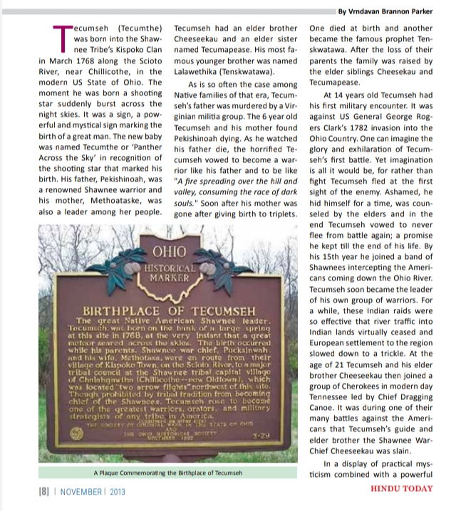 After witnessing a three hour speech by Tecumseh W.S. Hatch wrote, “The effect of his bitter burning words of eloquence was so great upon his companions that whole the 300 of them could hardly refrain from springing from their seats. Their eyes flashed, and even the most aged, many of whom were smoking, evinced the greatest excitement. The orator appeared in all the power of a fiery and impassioned speaker and actor.”